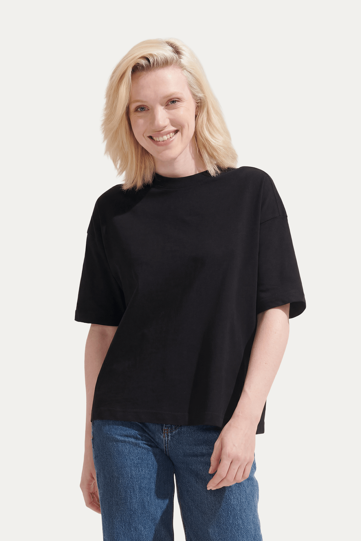 Get ready to fall in love with your new go-to tee! This Premium oversized women's t-shirt is made from 100% combed organic cotton. Designed with a relaxed, baggy fit and a stylish round neck, it's the perfect mix of comfort and casual cool. The high-quality cut-and-sew construction ensures a flattering silhouette, while a wide range of sizes means you'll find your perfect match. Plus, with several vibrant colors to choose from, it's the ideal blank canvas for your unique designs.