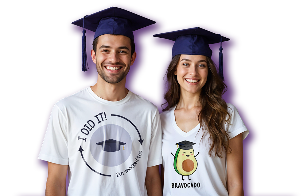 Tu es à la recherche d’un tee shirt j'ai eu mon bac pour célébrer ton succès ? Chez ShirtUp!, tu trouveras une sélection exclusive de t-shirts de haute qualité, spécialement conçus pour cette occasion spéciale. Que tu préfères un look élégant ou quelque chose de drôle, nos t-shirts bac sont aussi variés que ta classe. Utilise notre outil de personnalisation facile à utiliser pour personnaliser un cadeau bachelier pour soi-même ou pour offrir. Télécharge tes propres designs, ajoute des citations drôles ou choisis parmi nos designs prédéfinis. Ton cadeau fin d’études ne sera pas seulement un accessoire de mode, mais il sera aussi un souvenir de ce jour important.