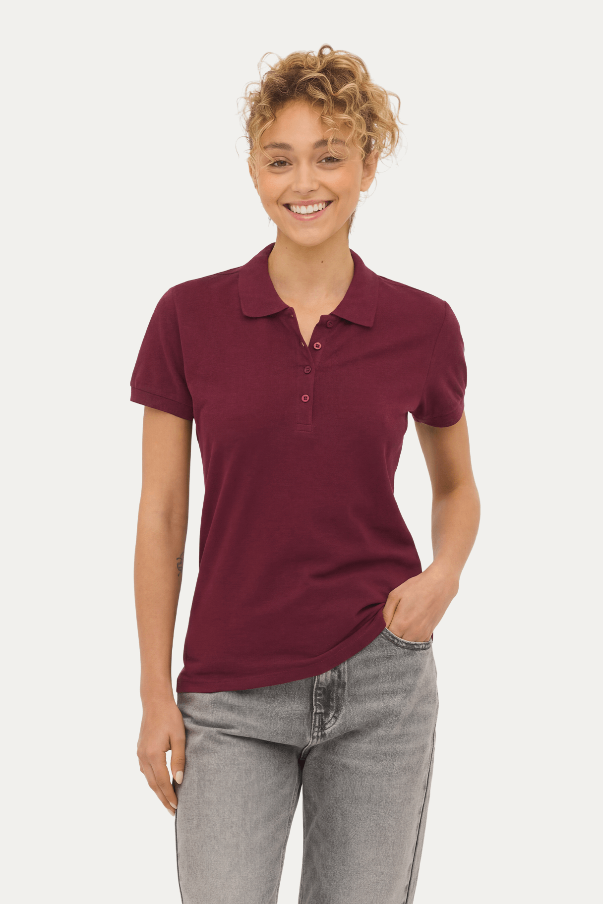 O produkcie Wykonana w 100% z czesanej bawełny ring-spun, ta Basic koszulka polo dla kobiet ma dopasowany krój, prosty dół z bocznymi rozporkami i 4 guziki na klatce piersiowej. Koszulka polo Basic dla kobiet do nadruku dostępna jest w różnych rozmiarach, co pozwala znaleźć idealne dopasowanie. Wybór różnych kolorów zapewnia wszechstronną bazę do Twoich kreatywnych projektów.