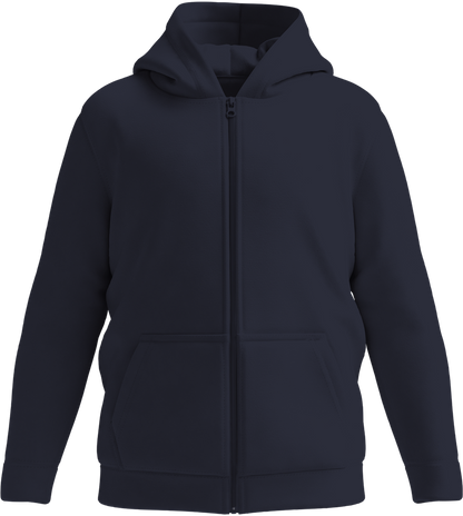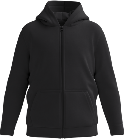 The Comfort kids zip hoodie, made from 50% ringspun cotton and 50% polyester, offers warmth, durability, and the option to personalize. Add their favorite design for a unique everyday look.