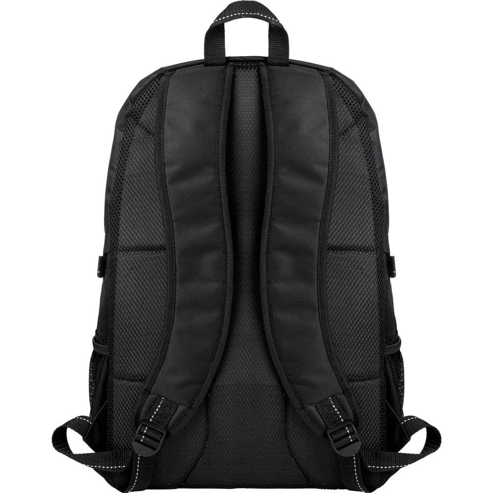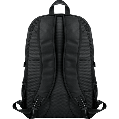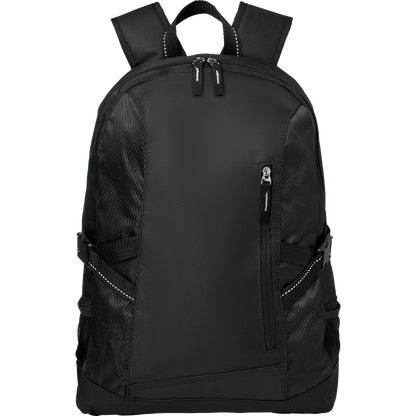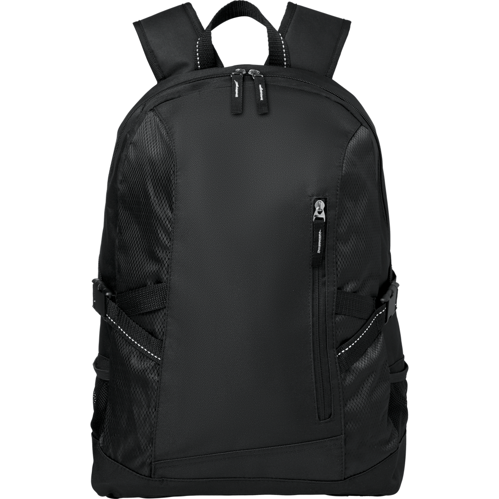 About this product 15-inch laptop backpack in 600D with rip-stop details, featuring side compartments and an adjustable shoulder strap.