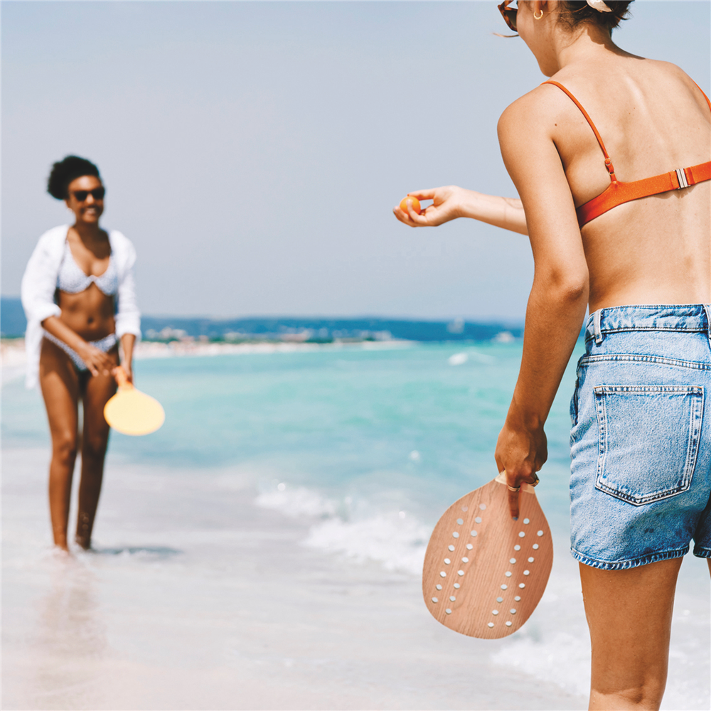 Upgrade your beach game with this premium rosewood tennis set. The high-quality paddles offer comfort and control, making every match fun and competitive.